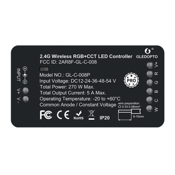The Zigbee 3.0 RGB and CCT LED controller is compatible with multiple gateways such as the Aeotec Smart Home Hub, Homee, Philips Hue Hub or Amazon’s Alexa Echo Plus. With this smart controller, LED Strips with RGB and CCT (5-in-1) chipsets as well as all standard LED products with 12/24V power supply can be controlled conveniently via a smart home gateway. This allows you to switch on/off, change the color, change the color temperature and dim LED strips, LED recessed spotlights, LED outdoor lighting or even pool lighting.
